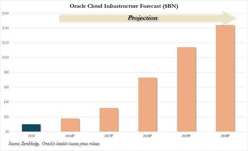 ... could have been less painful had Oracle also not reminded everyone that it, drumroll, doesn't actually have the money to pay for this spending orgy which is now projected to last well into the 2030s (without any recession on the horizon, of course, because nobody ever forecasts a recession).